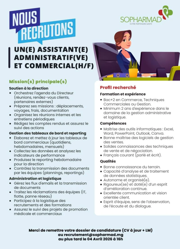 Share Facebook Twitter LinkedIn Pinterest Email NOUS RECRUTONS Assistante Administrative et Commerciale (H/F) Vous êtes organisé(e), rigoureux(se) et force de proposition ? Rejoignez notre équipe ! Candidatures (CV + lettre) à : [email protected] ju-featured